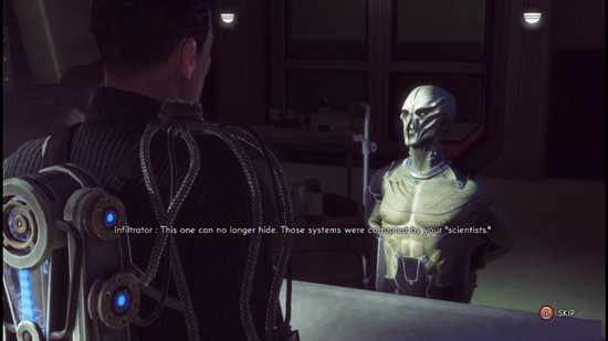 玩家可以选择用暴力或者是劝服的话语让渗透者讲出实情并让其与人类合作。