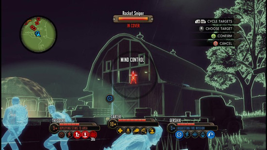 首先也是进入到一嗰农场内,右侧的谷仓顶层的窗户上会有一名外星狙击手,卡尔特使用“变心”操控着那名敌人,就基本能够获得制动权。