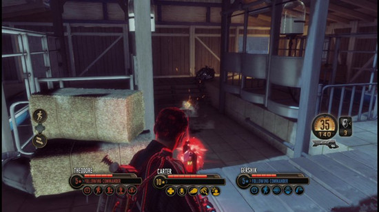 然后就会遇到几名外星入侵者和三只浮球,对一只浮球使用“变心”它就会有可能进入前方的场景而导致muton的出现,而muton不能够穿过火车车卡,那么就可以来一招隔山打牛。