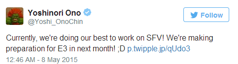 之前卡普空公布了E3的参展游戏列表,“格斗/摔跤-PS4”无疑指得是《街头霸王5》,不过一直没有官方确认,但是小野义德近日发表推特称:“《街头霸王5》看起来棒极了!我们已经为E3做好了准备。”看来《街霸5》肯定会在E3 2015出现了。