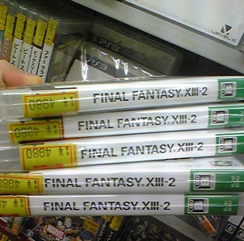 值得一提的是,圣诞节时部分游戏商店就出现了一些二手的《最终幻想13-2》,各位看下面的图片,五套二手货,每套售价4980日元。记得《最终幻想13-2》刚发售时全新货能卖到7000日元,而目前在大多数的游戏店都已经跌倒5500日元。