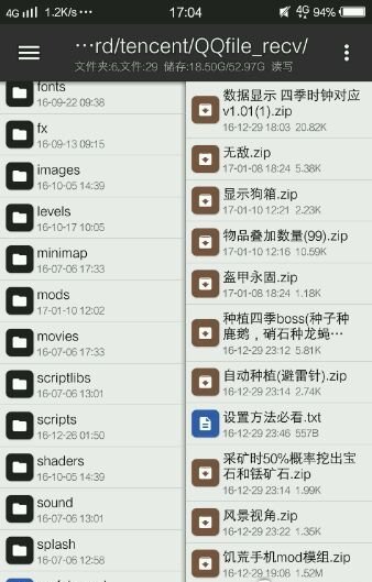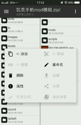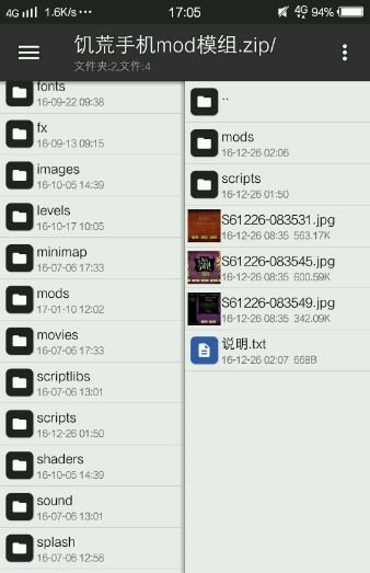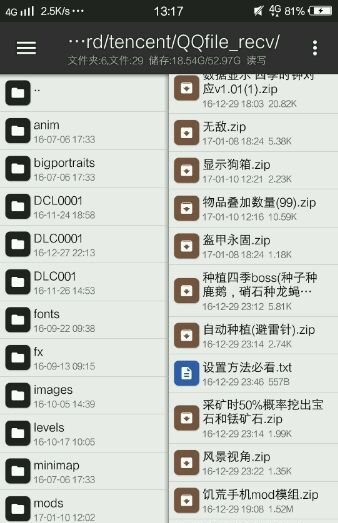 可以看到右边有个饥荒手机mod模组,打开看图可以看到s开头的文件和mods文件(其他你随意添加or不添加),直接添加,长按文件即可。