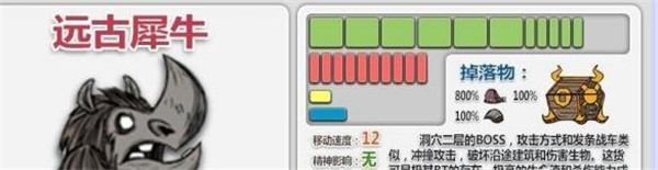 洞穴2层,上一个DLC的最终boss:一头独角犀牛。掉落8块肉。对,8块。顺带一提这犀牛的体积折算下来大概够6人吃一个冬天。