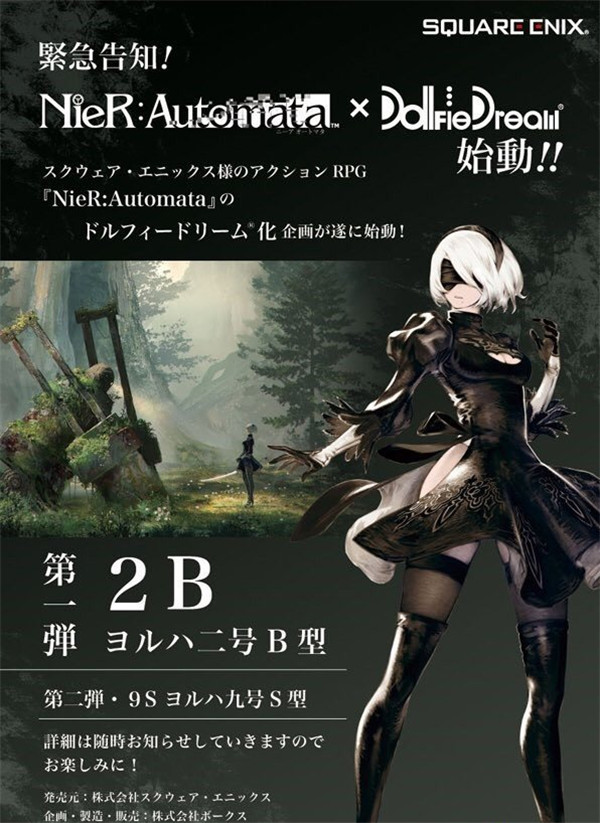 《尼尔:机械纪元》女主角2B小姐姐可谓是魅力十足,无论是联动也好,还是手办也罢,围绕着2B小姐姐衍生出的东西实在不少。现在SE联合Volks公司将推出2B和9S的DollfieDream娃娃。