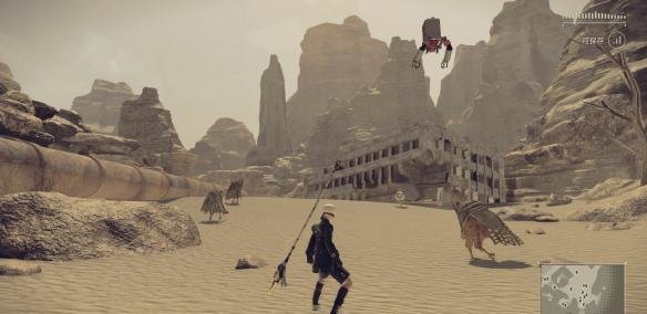 其实方法还是和第一种情况一样,找到艾米尔,让他停下,和他对话,然后再次跑回沙漠营地附近。但这次要注意的是,如果像第一次只跑到沙漠营地存档点附近,艾米尔有时候不会刷新,因此,为了让他刷新,我们需要再向沙漠里面跑一段路直到看到有几只小怪的地方,如下图。