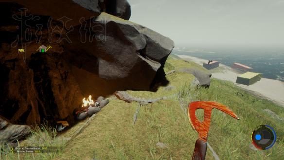 第二步:来到标记2的红圈地方进入洞穴,你能够找到一个可以在水下呼吸的道具以及手电筒。