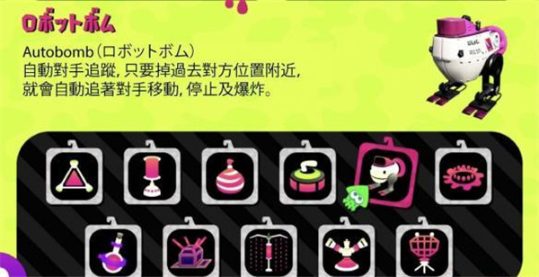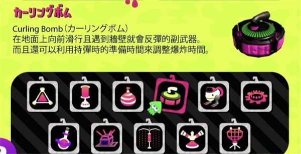 在地面上向前滑行且遇到墙壁就会反弹的副武器。而且还可以利用持弹时的准备时间来调整爆炸时间。
