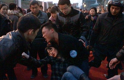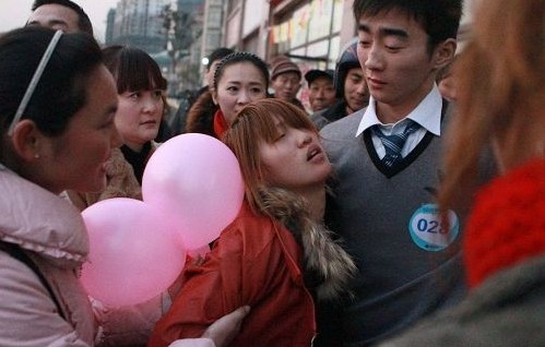 一位女选手因为体力不支而晕倒在男友怀里。