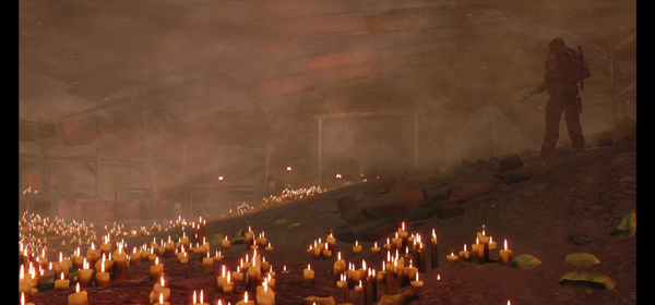 游戏里最悲惨的场景莫过于玩家看着被沙尘暴摧毁的迪拜市,到处都是废墟,尸体成堆,你所能做的只是默默祈祷上帝能拯救他们,然后向别的地方进发。你只是一个小小的人物,无法拯救世界,但可以造成一点影响。在游戏中,沙子遍地都是,你可以坐在沙地上休息,当然也可以利用沙子。比如把沙子覆盖在玻璃上,让愚蠢的敌人以为这是掩体,然后就可以非常轻松的靠几颗子弹就解决战斗。