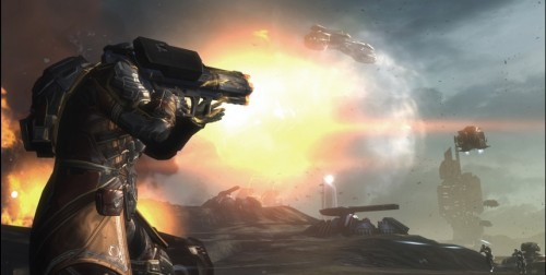 本作与PC网游《EVE》的深度互联允许《EVE》太空中的舰长对地面目标进行轨道炮打击,而《DUST514》的玩家则作为雇佣兵接收《EVE》中舰长们发布的任务——破坏其他势力在各个星球上的设施。《DUST514》的游戏理念已经大踏步的领先于全球任何一款网游。这款游戏是EVE的FPS版,由索尼在线娱乐部门出品。游戏发生在EVE的宇宙中,以取得战争胜利为目标而展开多人战斗。