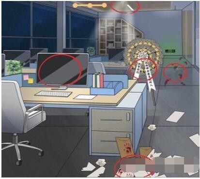 1、一代沙雕惊魂办公室找到所有诡异的地方是:-18、花圈、坏掉的灯、脚印、电脑新闻、档案碎片。