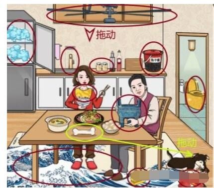 3、把桌上的骨头拖给狗,点击狗露出的金牙。
