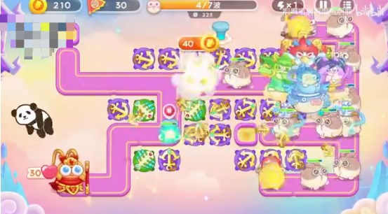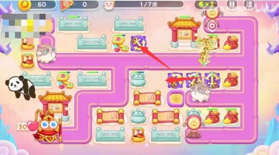 1、开局在右侧的那个空白位置放船锚炮,先清理旁边的道具,清完放船锚炮,左侧的锁定上方的栏杆,右侧的清理兔子,粉兔来了要锁头,上方栏杆清完也要放船锚炮;