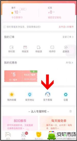 3、或者我们可以直接点击首页下面的【我的】然后选择官方客服,进入后点击“转人工客服”,进行投诉。