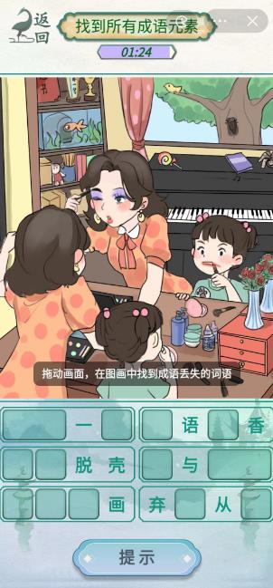 《新编成语大全》一起化妆找到所有成语元素攻略图文