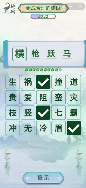 3、最后将横枪跃马输入进入后,那么所有的成语就是已经全部完成。