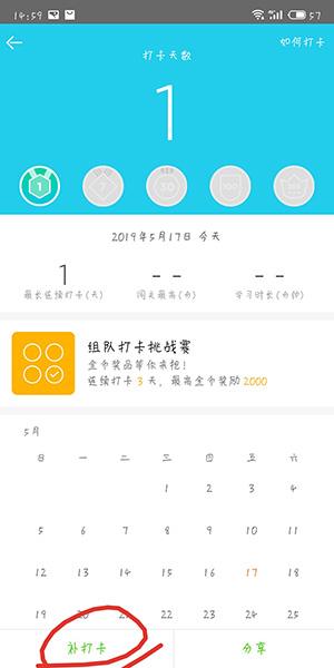 2、这样我们就可以进行打卡了哦!还可以进行补卡的操作。