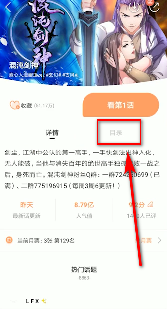 1、点击打开腾讯动漫app,点击想要观看的视频。