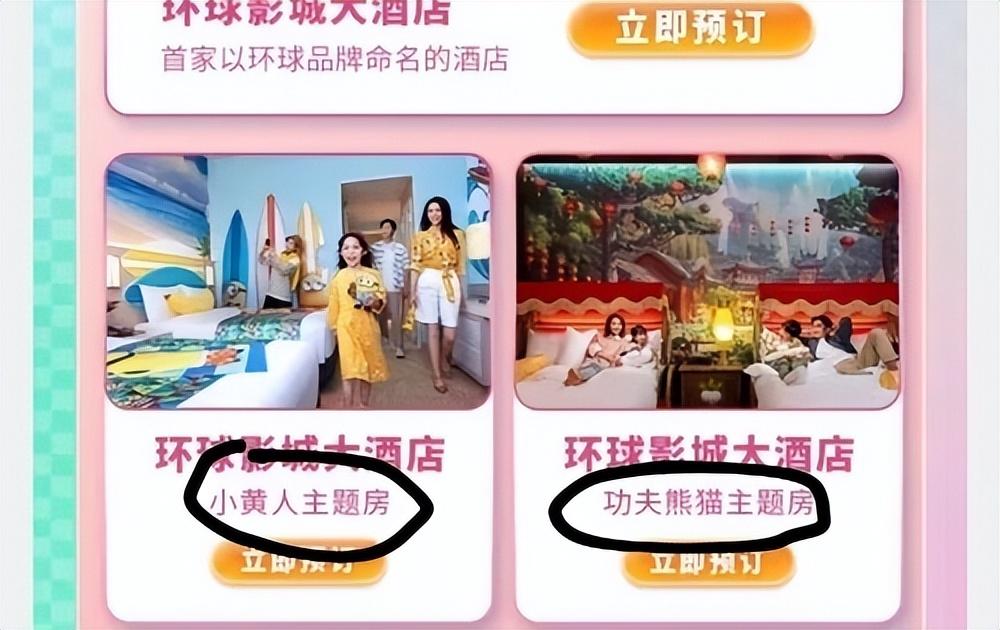 2、点击进入之后,向下拉到酒店预订会看到小黄人主题房和功夫熊猫主题房预定!所以本期的答案是:2种