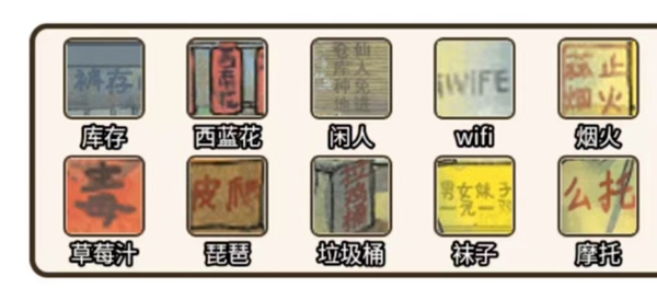 答案:库存、草莓汁、西蓝花、琵琶、闲人、垃圾桶、w ifi