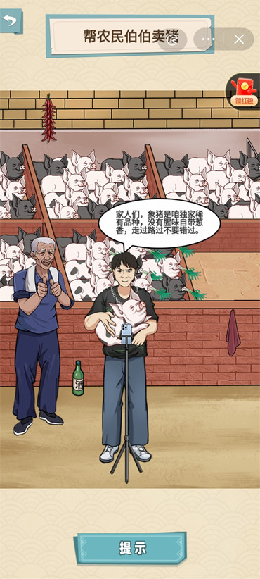 就挺秃然的这款烧脑闯关小游戏不仅能够帮助你锻炼大脑,还能给你带来乐趣和成就感。小编整理了就挺秃然的直播卖猪的答案分享,赶紧来看看吧!