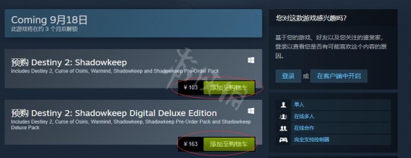 命运2暗影要塞售价:103元。