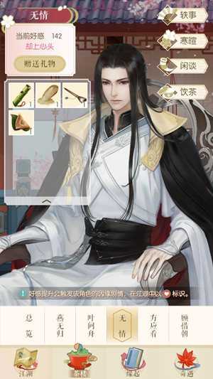 【寒暄】【闲谈】【饮茶】功能则可以与角色进行对应的互动。(需要好感度达到一定要求后才可以解锁)
