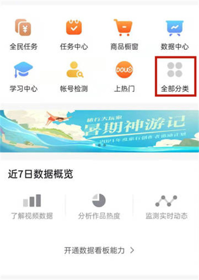 然后我们进入创作者服务中心之后,点击里面的全部分类功能。