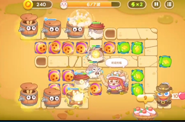 在木桶兔子出现之后就要在右边摆放瓶子炮,这个炮塔造成的伤害是基础伤害。