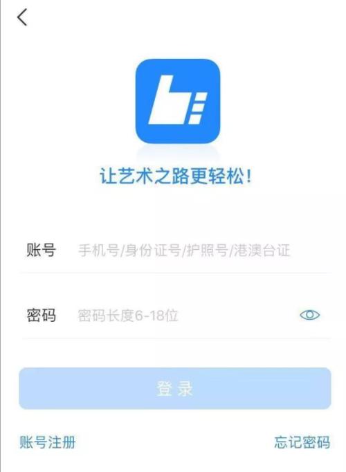 1、打开艺术升APP,在登录页面有选择“账号注册”。