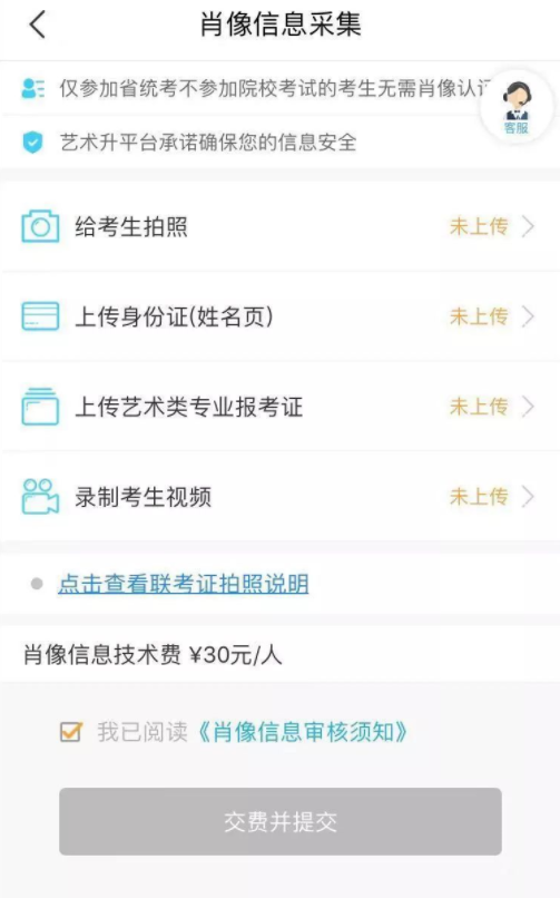 8、肖像认证:请根据提示拍摄,使用纯白背景、眼睛直视镜头、头部充满蓝色提示框。有大部分考生由于背景不是纯白或者用瓷砖墙做背景导致背景有横线或竖线而不合格,部分女同学由于头发遮挡五官不合格。考生拍照的照片将作为艺术升平台的全部院校报名的准考证照片使用。