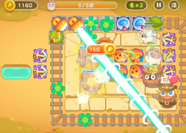 5、最后放置激光炮来清场,刷完这些兔子就完成本关关卡了。