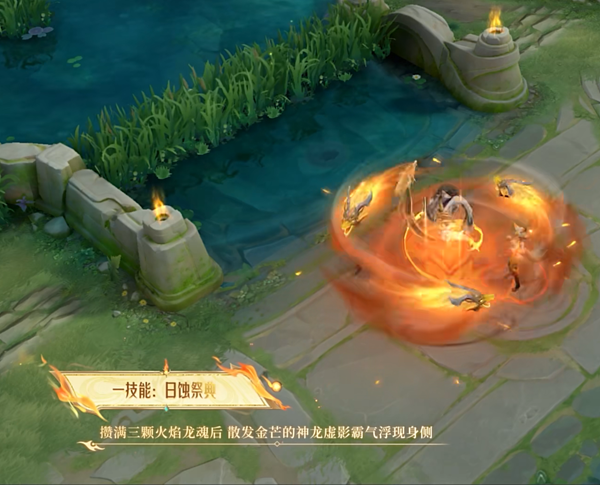 -火焰龙魂吸收烈阳之力以千钧之势砸向地面爆炸腾起冲天烈焰