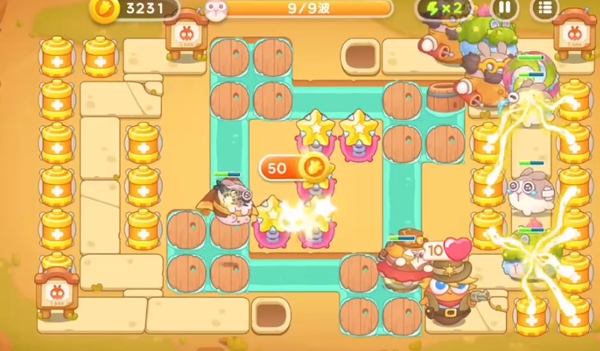 使用星星塔在中间位置上面来补伤害,这样就能快速的清理完成。