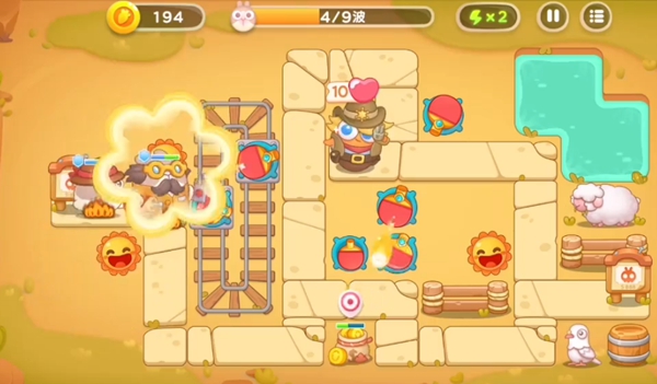 太阳花主要是群体攻击,兔子出现之后的伤害是非常的高的有金币就对其来进行升级。