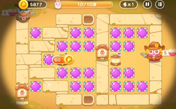 开局先是在右边的地图之中放上魔法球,因为它的伤害是比较高的同时攻击兔子和障碍物。