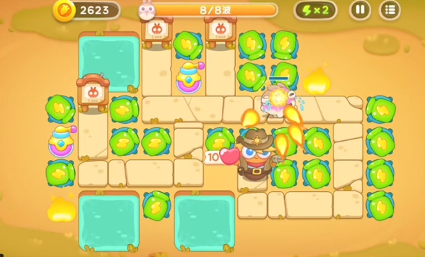 戴帽子的兔子血量是很厚的,就要将其来锁定攻击,这样就能快速的清理完成。