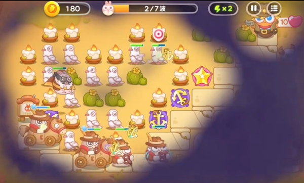 下面一排的位置上面全部都是船锚,在左边的是两个星星塔将其来进行升级。
