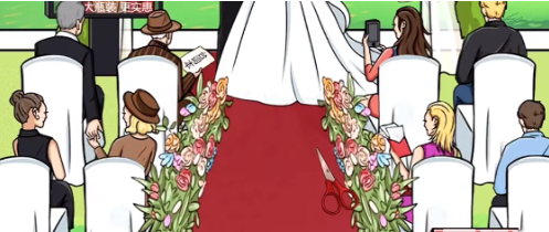 10、点击前后排手牵手的新娘父亲和新郎母亲。