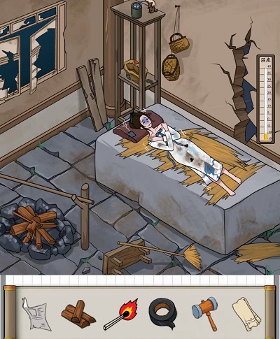 12、长按窗户,用透视镜查看“被咬的手”,并点击;