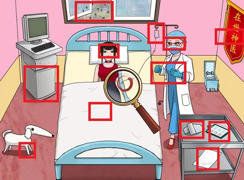 1、拖动透视镜,查看“床角”,出现老鼠;