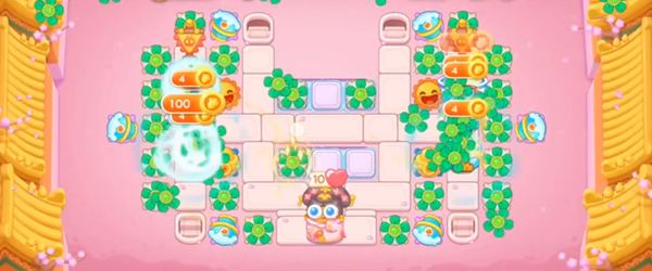 1、玩家进入游戏后在如图所示的位置放置四叶草炮台进行前期过渡,当进行到一定阶段之后,升级地图上所有的炮台来提升火力。