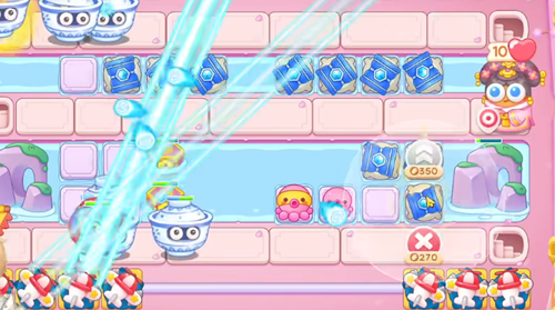 2、在上方水面上的格子建造冰桶,来减缓敌人的移动速度。