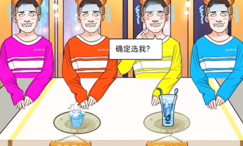 4、最后一轮卧底温水平民冰水,黄色衣服的鼻子是红的,选择他即可通关。