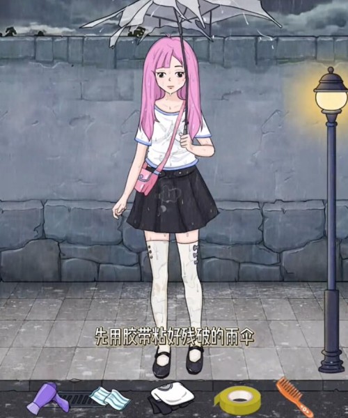 1、拖动雨伞给女孩,点击那些不好的言论,滑动擦除墙上的涂鸦。