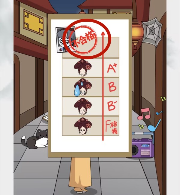 6、不合格,要点击女消失后掉在地上的成绩单。