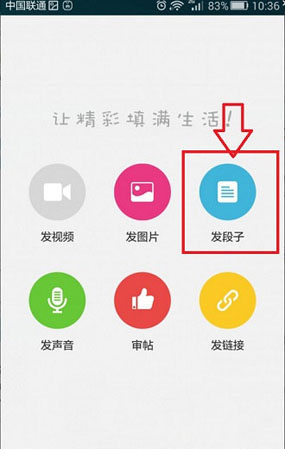 2、进入后,会出现发视频、发图片、发段子等等,这里当下小编选择的是发段子。