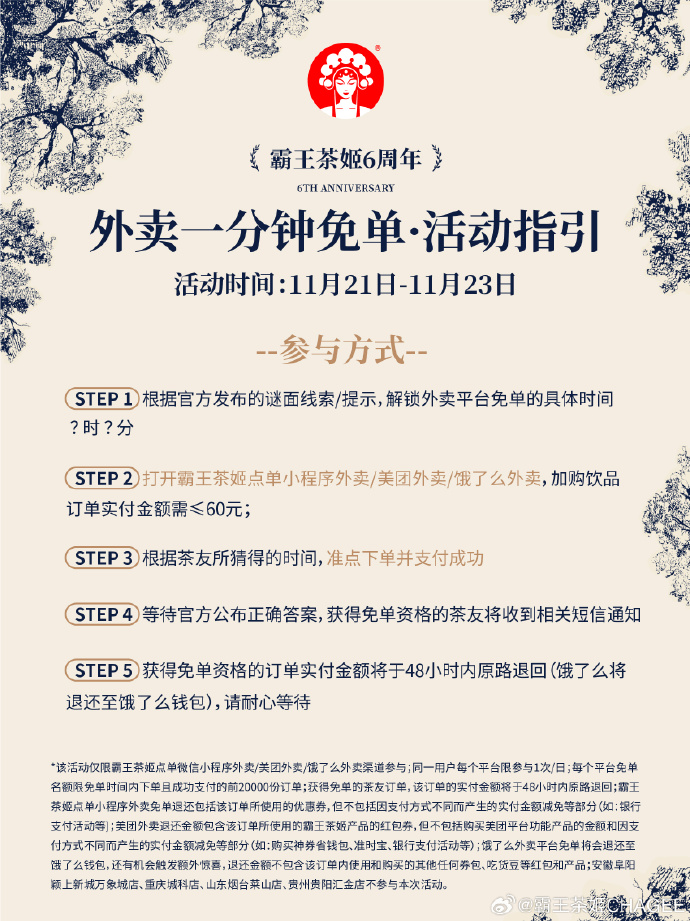 1、根据官方发布的谜面线索/提示,解锁外卖平台免单的具体时间