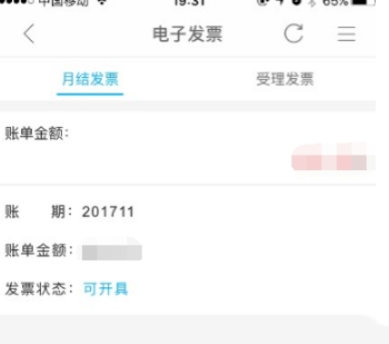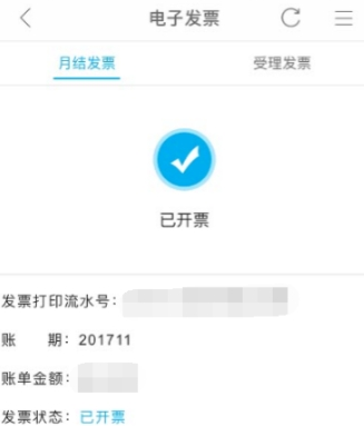 2.在“电子发票”中可以看到两项,月结发票和受理发票,这里报销的话当然是需要打印月结发票,选择需要打印的月份,点击“立即查询”。