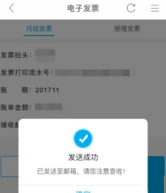 8.系统提示“发送成功”,这时,就可以去邮箱查看开具的电子发票了,电子发票是以附件的方式发送的,为PDF格式,可以根据报销需要进行打印。